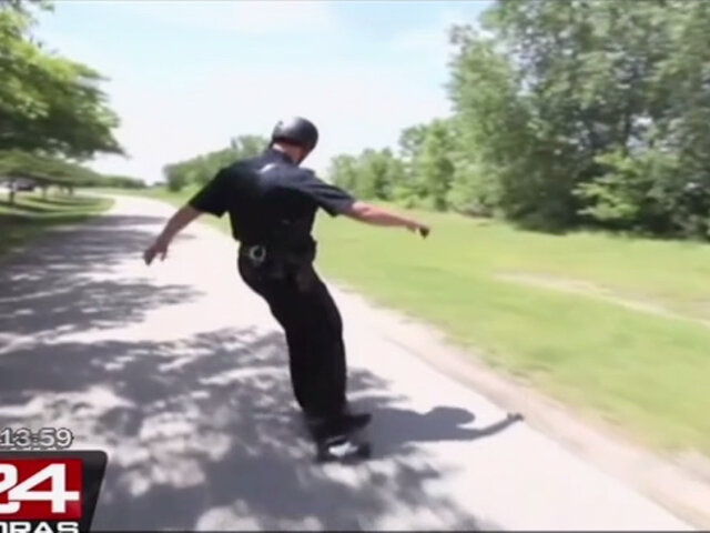 Policía sorprende a ciudadanos tras patrullar las calles en patineta