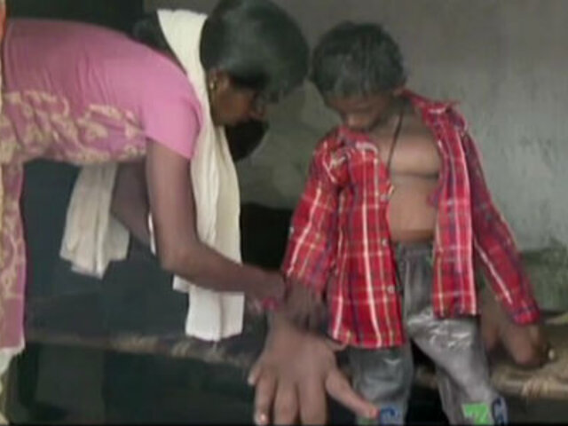 Una desconocida enfermedad ha provocado que las manos de un niño lleguen a pesar hasta más de 10 kilos. A sus 8 años el pequeño Kaleem ya no puede vivir una vida normal, no puede cambiarse de ropa, comer ni bañarse. Cada una de sus manos mide más de 30 cm y pesan 12 kilos. Los padres del menor se encuentran preocupados ya que su condición empeora con el tiempo.