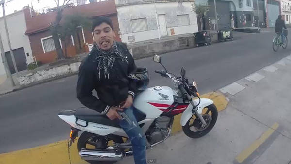 Un joven norteamericano, que disfrutaba de un paseo en bicicleta por un barrio de Buenos Aires, grabó los precisos instantes en que un ladrón armado intenta robarle sus pertenencias.