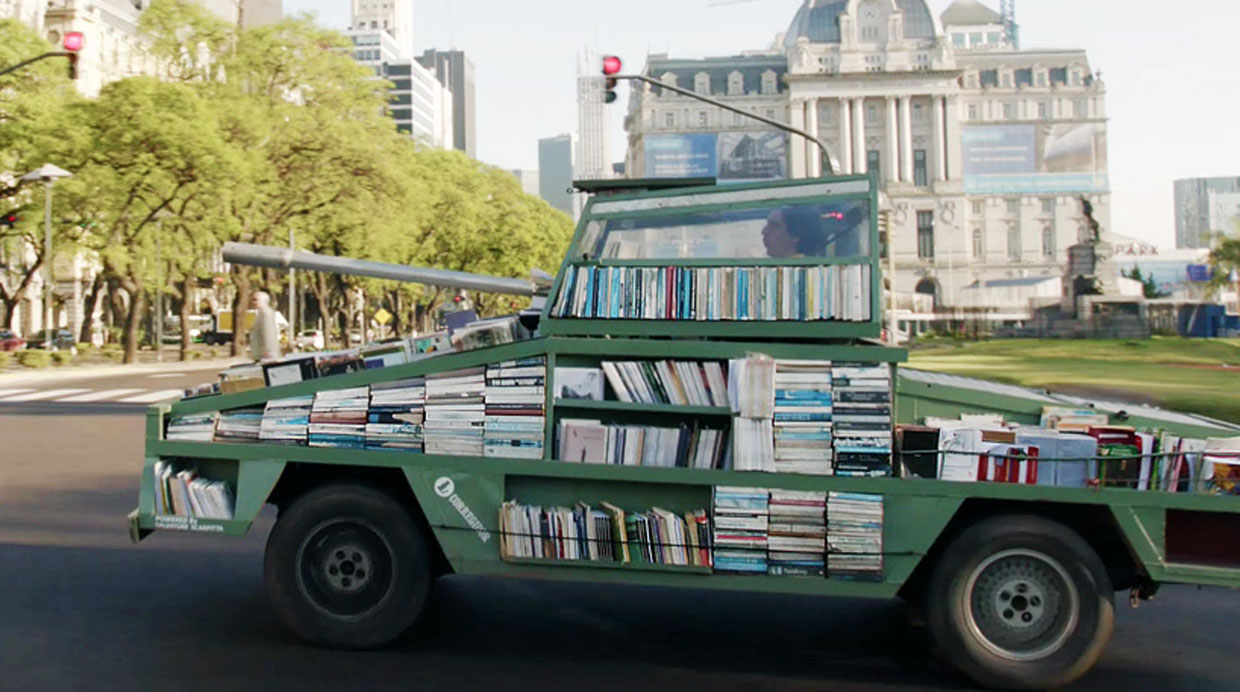 Artista convirtió un tanque de ‘guerra’ en librería ambulante en Argentina