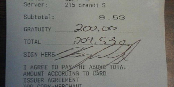 En un restaurante de Estados Unidos, un agradecido cliente dio una exorbitante propina de 200 dólares a pesar de hacer un consumo de sólo 9,53 dólares. Al parecer, el hombre habría quedado conmocionado por la historia de la camarera, lo que produjo su gran gesto de solidaridad.
