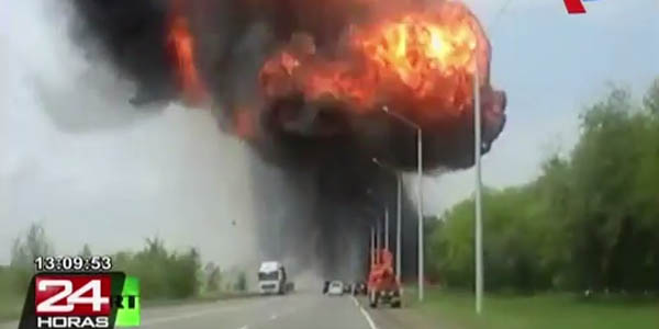 Impactantes imágenes: camión explosiona en una autopista de Rusia