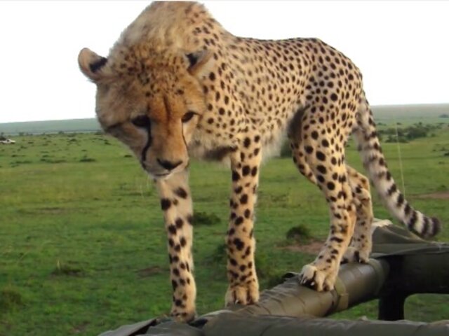 Unos turistas pasaron un gran susto cuando un guepardo subió al jeep en el que hacían su recorrido por una reserva natural en Kenia. Lo más impactante fue cuando el felino estuvo a punto de caer dentro del vehículo.