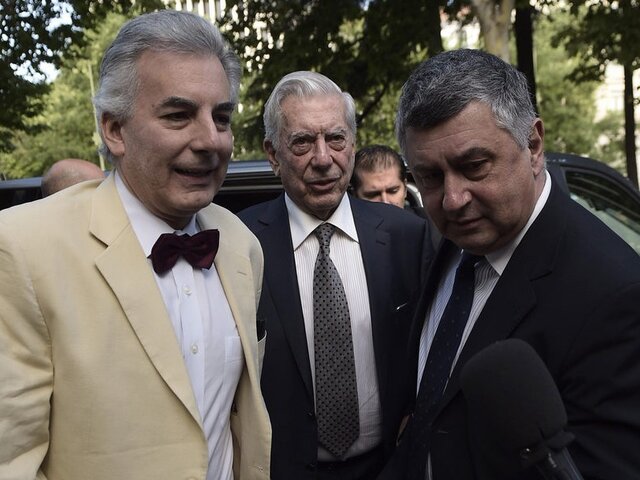 El escritor peruano llegó al Foro Atlántico que se celebra en Madrid acompañado de su hijo Álvaro. Esta es la primera vez que se ve a Mario Vargas Llosa con alguno de sus hijos luego que se confirmara su romance con Isabel Preysler. Según la prensa del corazón de España, Álvaro Vargas sería el único que apoya al escritor y estaría actuando de "mediador" entre el premio Nobel y su madre Patricia Llosa.