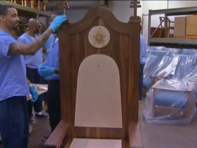 Presos del Centro Correccional Industrial de Filadelfia realizan una silla tallada para el Sumo Pontífice. Luego será tapizada en la Instalación Correccional Curran-Fromhold. Como se sabe, el Papa Francisco se reunirá con 100 reos y sus familias durante su estancia de dos días en la ciudad. Louis Giorla, comisionado de prisiones, manifestó que el buen comportamiento sería un factor en la selección de los presos que se reunirán con el Santo Padre.