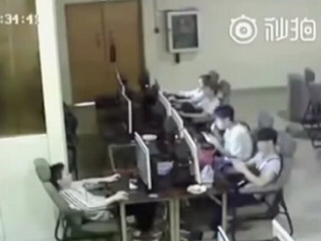 En las imágenes se observa como el joven retira el cable con el que había conectado su teléfono móvil a la computadora, cuando de pronto hace un movimiento brusco y luego queda inconsciente en la silla.
