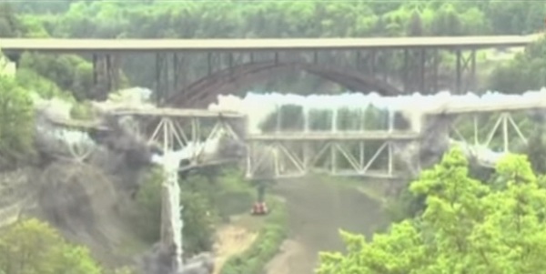 En Estados Unidos, autoridades de Nueva York participaron de la implosión de un antiguo puente para dar paso a una moderna estructura.