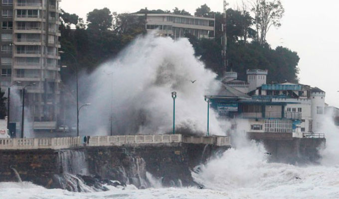 Un fuerte oleaje ha generado diversos daños en el borde costero de Chile. Varios puertos han tenido que ser cerrados luego que olas de hasta 7 metros de alturas azotaran el litoral. La emblemática avenida Perú quedó completamente anegada por la marea agitada.