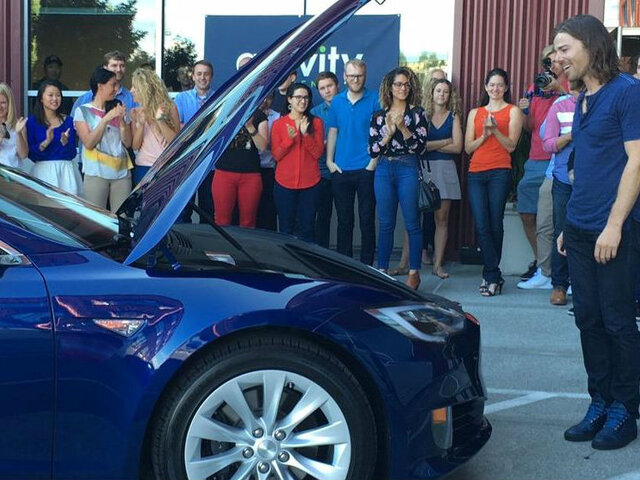 Los empleados, tras varios meses de ahorro, fueron a una exclusiva tienda de automóviles y le compraron el coche de sus sueños.