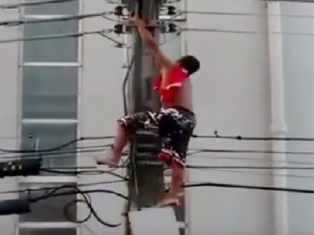 El irresponsable subió a los cables de alta tensión mientras la multitud esperaba la llegada de la suspendida mandataria. El hombre, que estaba descalzo y con una ramera roja, se trepó, se sacó la camiseta y empezó a llamar la atención.