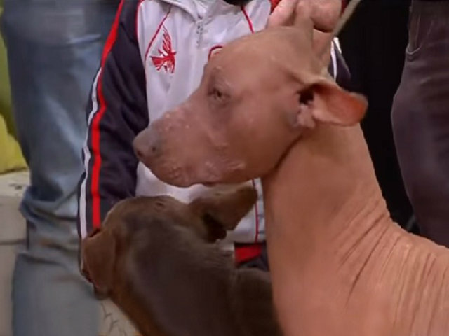 "Ante ustedes, el perro pelón del Perú. Por favor que venga el grande porque tenemos una versión con pelo. Venga para acá. Mira este perro es increíble, este es un perro originario del Perú", dijo uno de los presentadores.