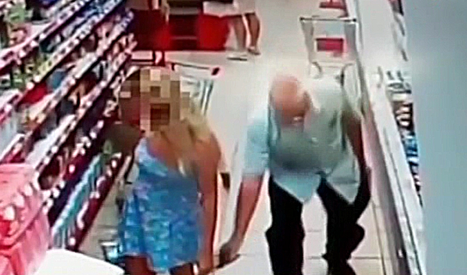 Una cámara de seguridad de un supermercado en Rusia, registró a un hombre de avanzada edad que aprovecha un descuido de una mujer para tomarle fotos debajo de la falda con el teléfono celular, siendo esta la herramienta preferida para los depredadores sexuales.