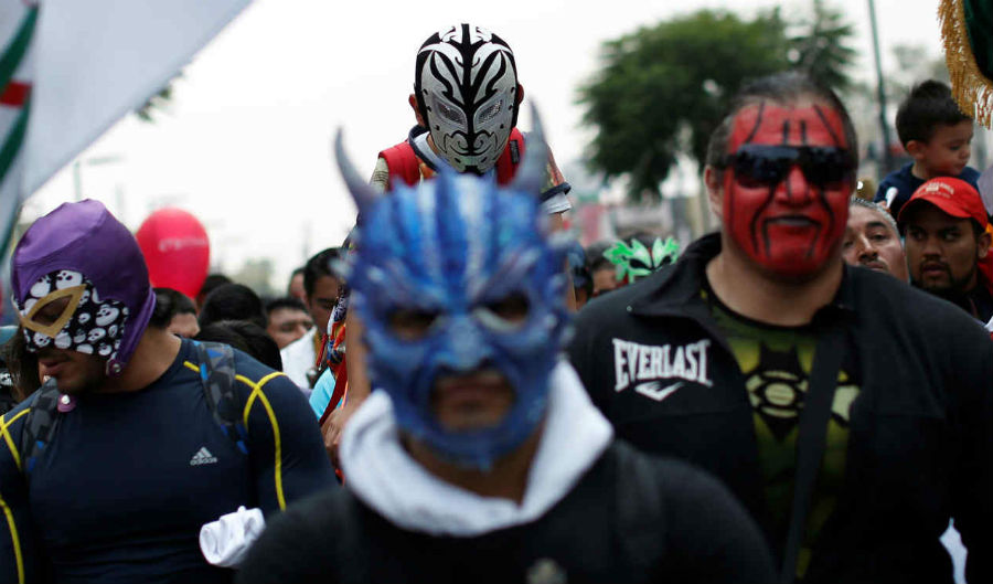 Hicieron un alto a los puñetes, llaves y patadas voladoras para rendir un homenaje a la Virgen de Guadalupe. Cientos de luchadores, muchos de ellos con los rostros pintados y con máscaras, peregrinaron por las calles de Ciudad de México hasta llegar a la Basílica Central.