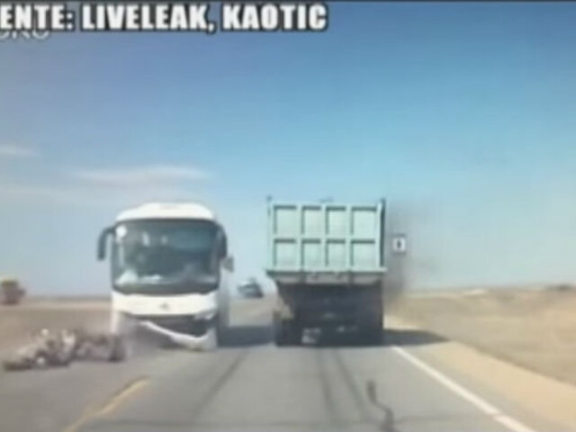 Por otro lado, en la India, un hombre que viajaba en una motocicleta, salvó de morir tras ser embestido por un camión que lo arrastró varios metros. Otros sujetos también fueron alcanzados por el vehículo, pero por fortuna solo resultaron con leves lesiones.