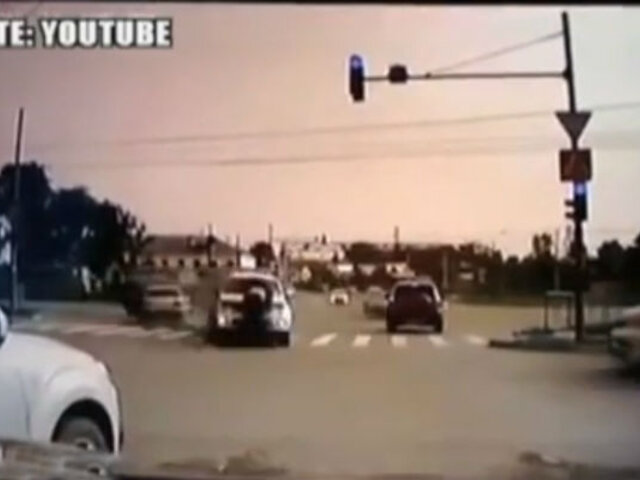 Un hombre fue arrollado por la imprudencia de un conductor en Rusia. El chofer no esperó el cambio de la luz del semáforo y tras acelerar su vehículo, se chocó contra otra unidad. El impacto provocó que se desvíe y atropelle a un joven que cruzaba por la pista.