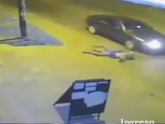 Cámaras de seguridad grabaron el preciso momento en que una mujer es embestida cuando cruzaba la pista, por un automóvil que venía a toda velocidad. Tras el impacto, la mujer se puso de pie y resultó con algunas heridas.