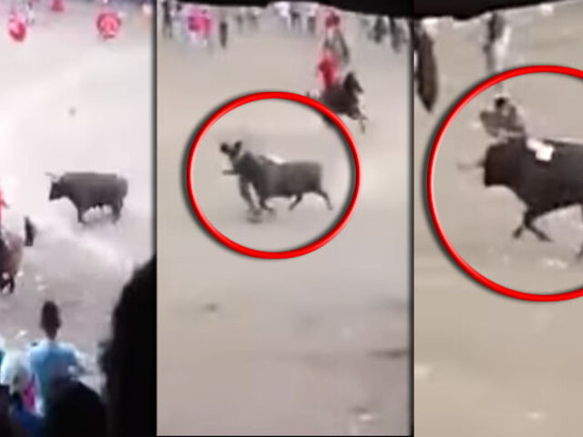 La víctima identificada como Hugo García, de 27 años de edad, fue tomado por sorpresa por el toro de lidia cuando intentaba escapar del ruedo, al que entró junto con una multitud como manda la tradición.