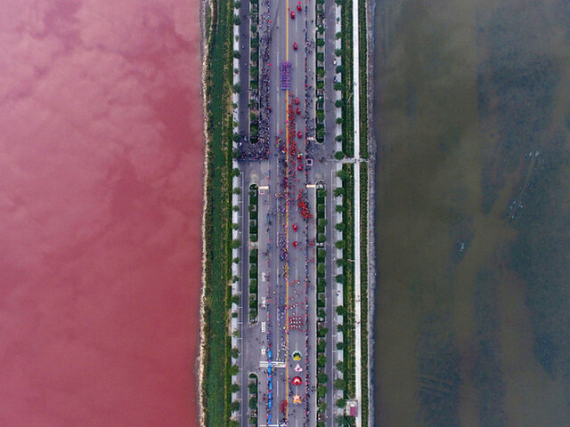 'Mar Muerto de China' se vuelve rojo