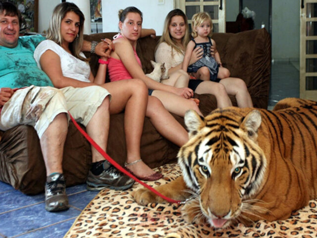 Familia vive con siete tigres de bengala en Brasil
