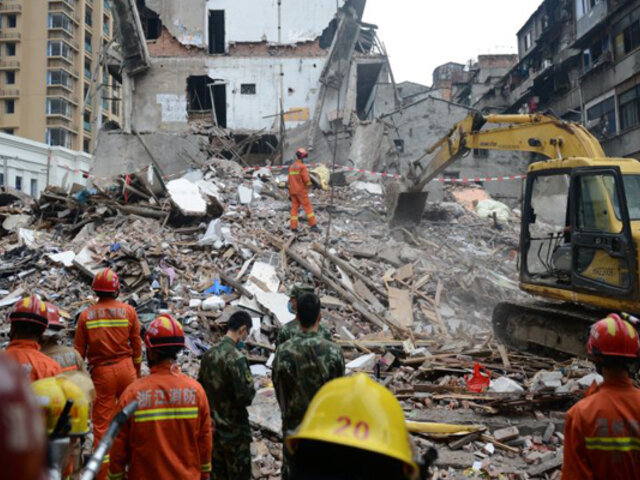 El sorpresivo derrumbe, cuyas causas no están claras, ocurrió en el distrito industrial Lucheng de Wenzhou, mientras decenas de familias dormían al interior de los edificios residenciales.