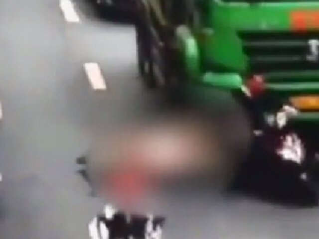 En China, una mujer que viajaba tranquilamente en su motocicleta por una transitada carretera intentó adelantar a un ciclista y terminó perdiendo el control, cayó bajo un autobús que termino arrollándola. La víctima murió en el acto.
