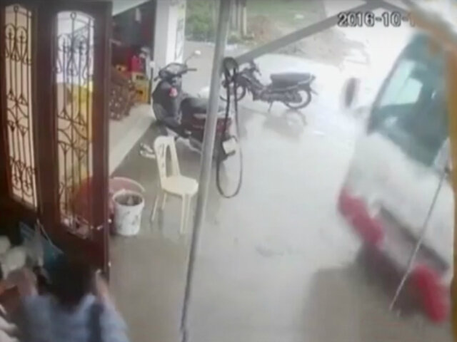 Dos jóvenes salvaron de morir arrollados por un autobús en Vietnam. Al intentar detener el vehículo, el conductor terminó despistándose y estrellándose contra la entrada. Por fortuna lograron escapar a tiempo.
