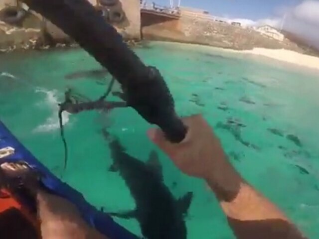 VIDEO: remar con su kayak en medio a decenas de tiburones le costó ser acusado de maltrato animal.