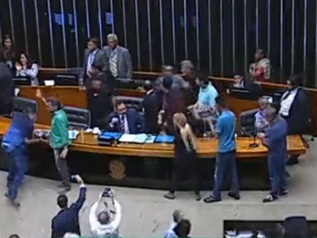 Las imágenes captadas por la televisión brasileña mostraron a los protestantes exaltados cantando consignas contra la corrupción ante la mirada de algunos diputados que permanecían en el lugar.