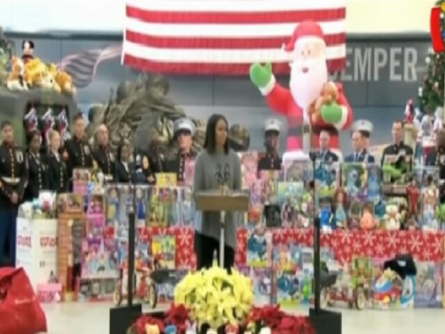 La primera dama de Estados Unidos, Michelle Obama ya vive el espíritu navideño y encabezó por octavo año consecutivo la campaña de ‘un juguete para los más necesitados’. En el evento dirigido por marines se distribuyeron los obsequios que son donados en diciembre para las familias de escasos recursos.