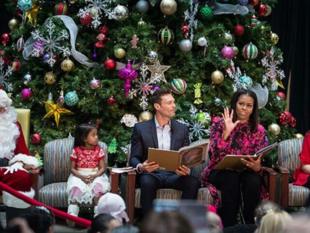 La primera dama de Estados Unidos, Michelle Obama, visitó el Hospital Nacional Infantil en Washington, donde leyó cuentos clásicos a los niños internos acompañada del presentador de televisión Ryan Seacrast y de un singular Papa Noel.