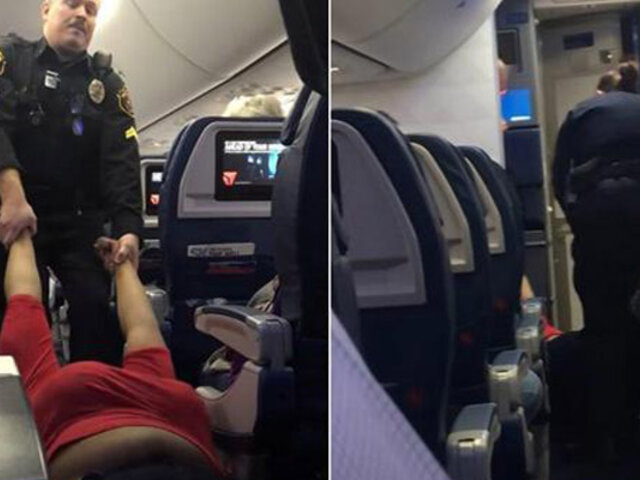 En el vídeo se observa cuando la mujer es jalada por el pasillo por los agentes de la policía mientras los pasajeros miraban atónitos la escena.