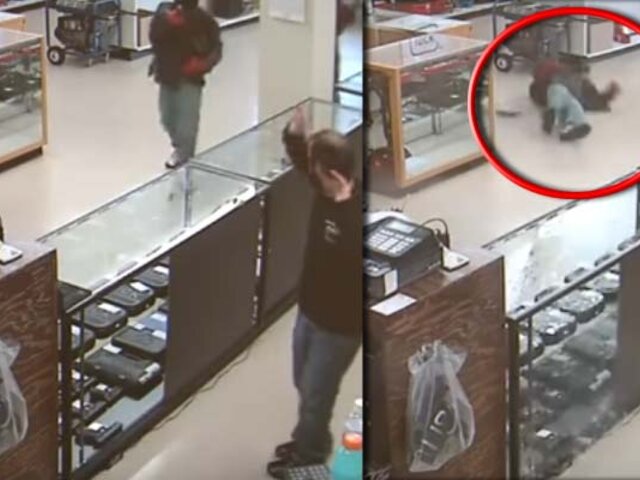 Las dramáticas imágenes se registraron en Georgia, Estados Unidos, en sus declaraciones el propietario del negocio aseguró que actuó en defensa propia, porque los asaltantes dispararon primero, la versión del hombre fue comprobada cuando la policía revisó los videos de las cámaras de vigilancia.