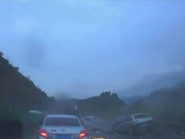 Seis personas murieron y otras 16 resultaron heridas en un múltiple choque de 19 vehículos en una carretera en el sur de China. La cámara de seguridad de uno de los autos registró el preciso instante en que el camión cisterna pierde el control y causa un aparatoso accidente.