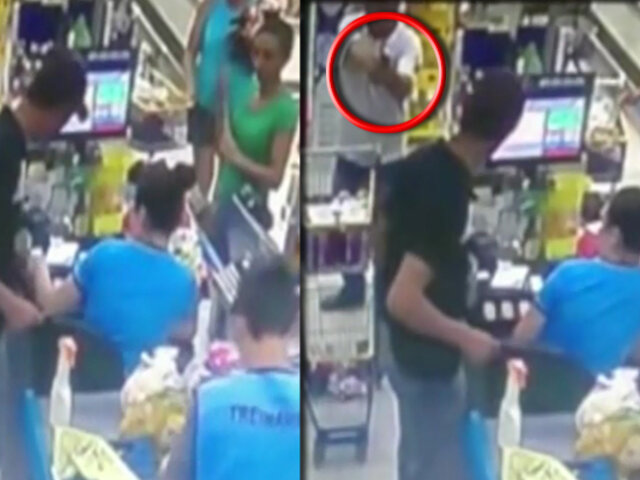 Este hecho ocurrió en un concurrido centro comercial, en las imágenes se observa a un sujeto que intenta asaltar a una cajera de un supermercado en Brasil, el ladrón saca un cuchillo y amenaza a la trabajadora con matarla si no le entregaba el dinero, no contó con que en la fila se encontraba un oficial vestido de civil, que rápidamente saco su revólver y frustró el robo.