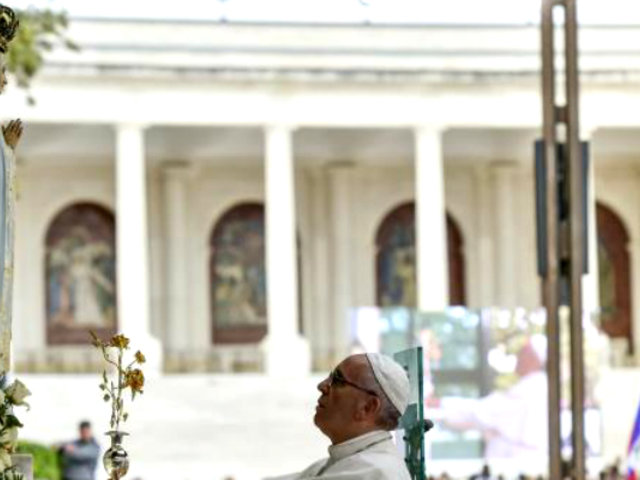 Desde la Capilla de las Apariciones, Francisco elevó una oración ante la virgen donde dejó flores blancas y una rosa de oro. Además se refirió a los hermanos Jacinta y Francisco que serán canonizados este sábado.
