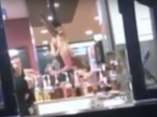 En un video captado otros comensales, se observa la violenta reacción de la mujer, quien se trepó al mostrador para golpear a una trabajadora e incluso le tiró la comida al gerente.