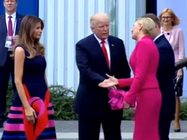 Luego que el magnate diera un discurso en la ciudad de Varsovia, empezó a saludar al público junto a su esposa cuando de pronto se acercaron a la pareja presidencial. Agata Kornhauser ignoró el saludo de Trump y saludó a Melania por lo que se extrañó y dejó en evidencia una mueca mientras ambas hablaban. Después de unos segundos, la primera dama se volteó a saludarlo.