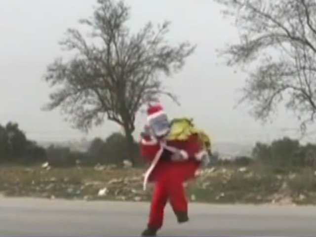 Un manifestante palestino salió a protestar a las calles y no tuvo mejor idea que hacerlo vestido de Papa Noel. Por ello, un hombre vestido con el característico traje de San Nicolás fue visto atacando a los soldados israelitas.