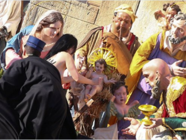 Activista de 'Femen' intenta llevarse al niño Jesús del Vaticano