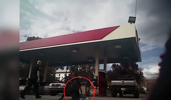 El oficial, ante la huida del sospechoso, atinó a utilizar su pistola eléctrica para inmovilizarlo. Pero sucedió todo lo contrario y el hombre se enfureció y empezó a atacar al oficial hasta quitarle su arma y derribarlo. Otro policía se encontraba en la escena desenfundó su arma y realizó varios disparos contra Peterson, quien finalmente perdió la vida.