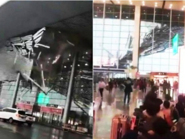 Ante la mirada de miles de personas, cayó el techo del aeropuerto de la provincia de Jiangxi, China. El hecho ocurrió como consecuencia del potente temporal que azota el Este y Sur del país en las últimas fechas.