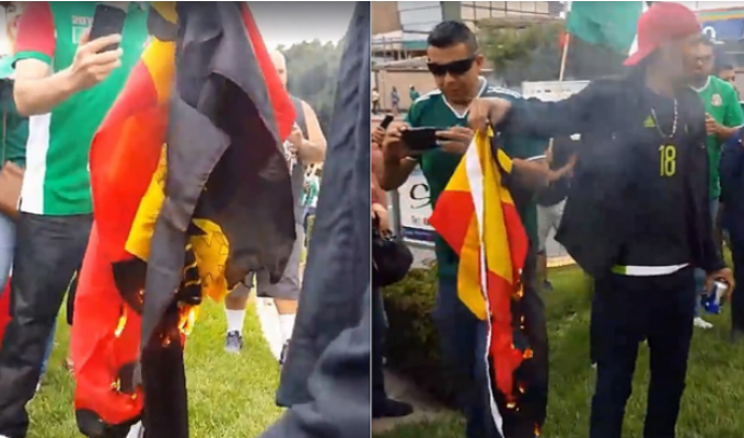 Mexicanos queman bandera de Alemania tras triunfo 1 a 0