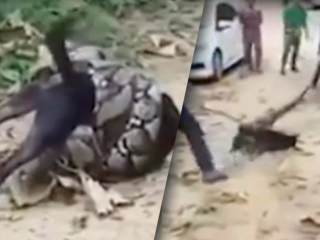 Al percatarse de la impactante situación, unos campesinos que se encontraban cerca se organizaron para rescatar al perro. En el video grabado por uno de los testigo se observa cómo el reptil tenía completamente inmovilizado al animal, el cual sólo podía mover su cola a manera de desesperación y se resistía a los intentos de la boa.