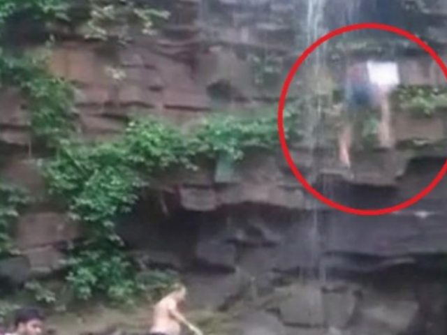La cámara de un aficionado en la India registró el preciso instante en el que un hombre cayó de una casaca por intentar tomarse un selfie. Según testigos, el sujeto que perdió el equilibrio y resbaló cayendo sobre las piedras del catarata de 20 metros de altura.