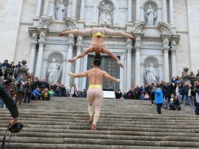 Ambos artistas subieron las gradas de la catedral de Girona con la ‘técnica cabeza con cabeza’.