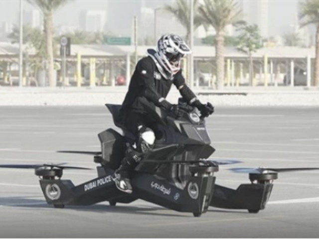 Autoridades policiales de Dubai ya vienen aprendiendo a pilotear motos voladoras, capaz de soportar hasta 300 kilos. El vehículo, de un solo ocupante, fue obsequiado por una conocida empresa de California a las Fuerzas del orden de la ciudad de los Emiratos Árabes Unidos para empezar a patrullar en 2020.