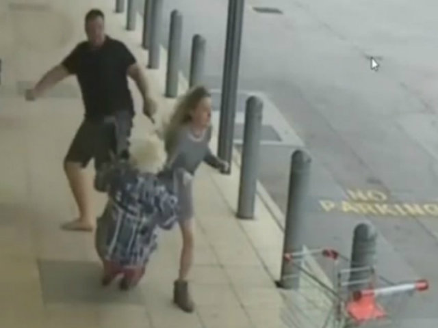 En un primer momento el le da un puñete a la joven, pero luego le propinaría una patada en la espalda. La fuerza del impacto fue tal que terminaría derribando a la anciana.