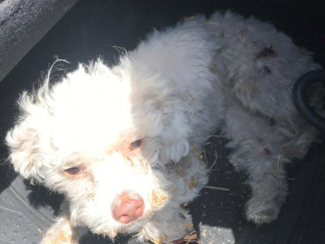El agente lo acarició para ganarse su confianza y, al parecer, pensaba dejarlo en un lado de la carretera, pero repentinamente cambió de opinión y se llevó al animal a su patrulla.