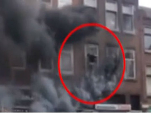 Una persona registró el preciso instante en el que un hombre, en una medida desesperada, saltó desde el tercer piso de un edificio, que estaba envuelto en llamas, ubicado en Holanda.
