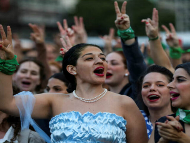Usando un pañuelo verde en sus muñecas, que simboliza la lucha por la legalización del aborto en el país, las ‘evitas’ realizaron la marcha en tono opositor al gobierno de Mauricio Macri con el tema “Evita el macrismo”.